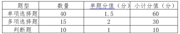 “管理体系认证基础”、“产品认证基础”、“服务认证基础”三个考试科目的题型都是由客观题和主观题两部分组成,考试的题型及分值一样,具体的考试题型及分值见下表: